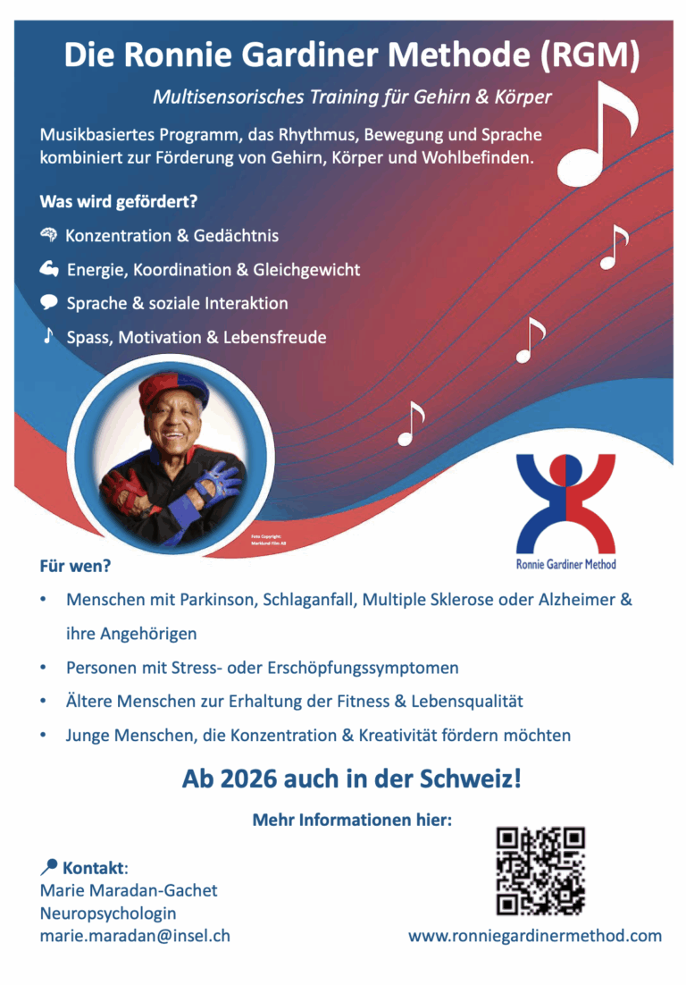 • Kognitive und physische Doppelforderung: Durch die Verbindung von Bewegung, Rhythmus und kognitiven Aufgaben trainiert die RGM Gehirn und Körper zugleich ein Ansatz, der bekanntermassen die Neuroplastizität stärkt
